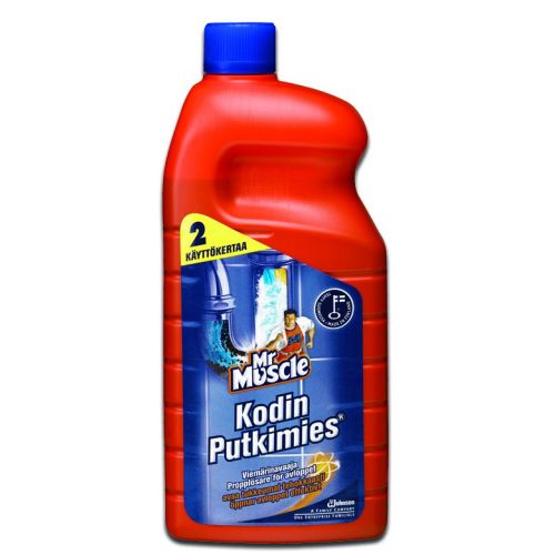 Mr Muscle Kodin Putkimies -liuos poistaa tehokkaasti tukkeumat putkistosta tunkeutumalla veden läpi ja liuottamalla lian. Sopii useimpiin viemäreihin, kuten tiskialtaisiin, pesualtaisiin ja lattiakaivoihin. Ominaisuudet: - Tehokas tukosten poistaja - Toimii veden läpi - Sopii useimpiin viemäreihin - Lapsiturvakorkki - Sisältää natriumhydroksidia (pH 13) - Syövyttävä – käytettävä varoen - Ei sovellu wc-pönttöön tai koneisiin